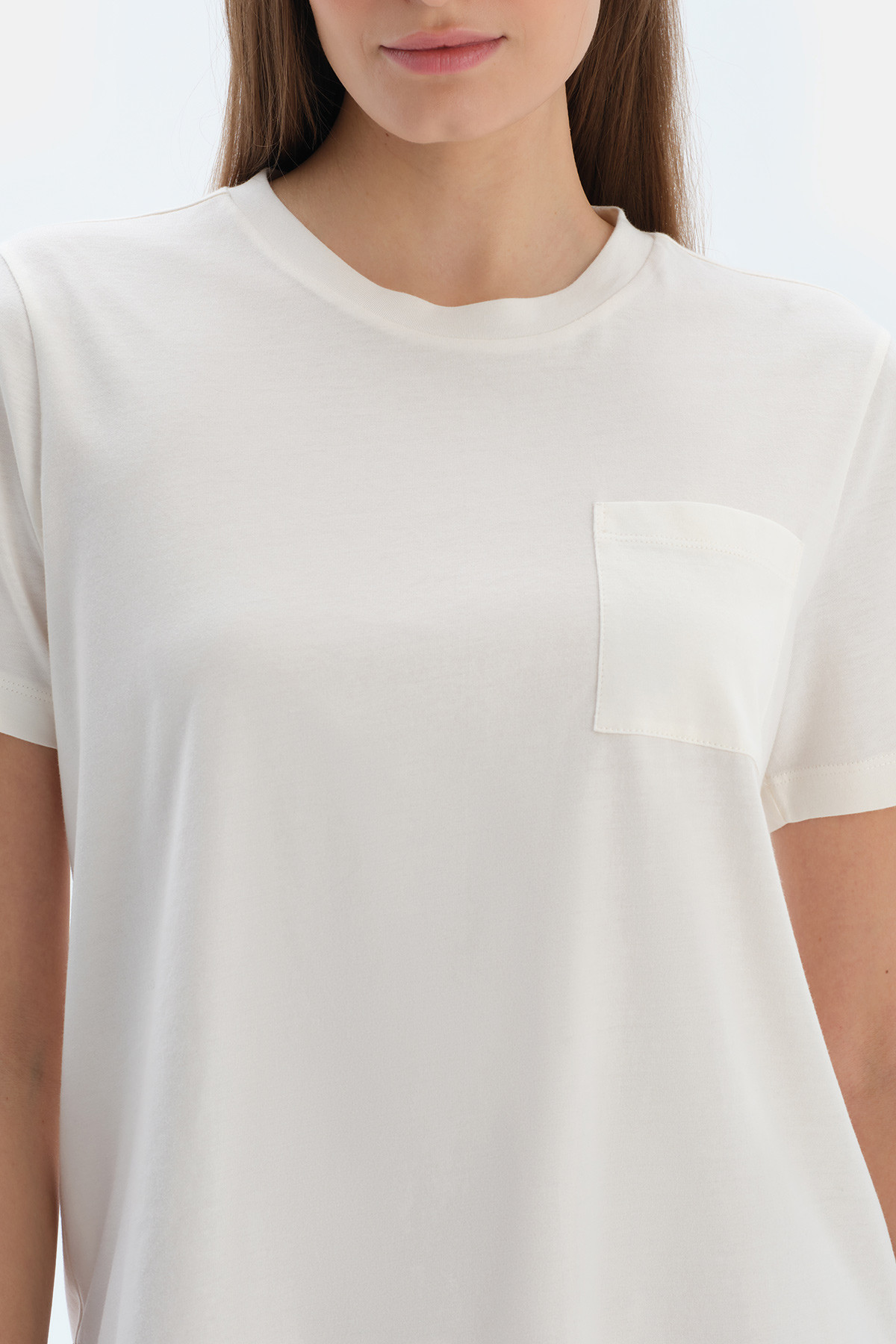 Ensemble Pyjama T-Shirt À Col Rond Avec Pantalon Tissé Femme Ecru Écru